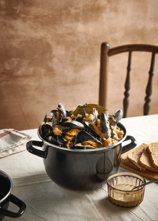 Mosselen eten hoort bij de Belgische eetcultuur. Veel families hebben de traditie een of meerdere keren per jaar mosselen te eten. Zo ook bij Sven Ornelis zijn mama. In het vorig jaar verschenen Mijn mama’s kookboek deelt Ornelis zijn moeder’s recept.